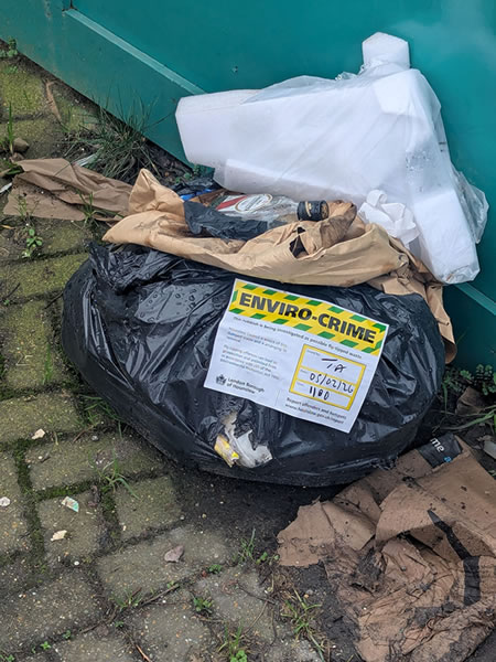 Meanwhile across the road a black bag investigated by Special Waste Service a week ago is still there today, has attracted some extra mess and somebody with teeth to see what's inside. As I took this picture this morning I met Tawakal (the TA from the label) who told me he had checked for evidence in the bag but found no address. I don't think the policy of leaving stuff as a warning is a good plan. It makes people think the problem is even worse than it is. I spent Monday on emails and leisure and on Tuesday I spent the day wandering around the ward as I do. Somebody had asked me about arrangements for waste collection in the newly closed New Road.